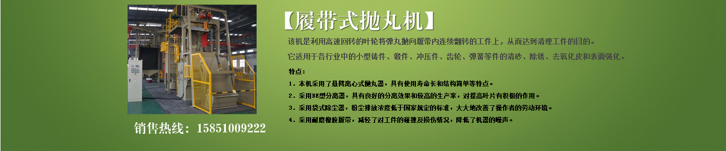 公司主要產(chǎn)品有各種型號(hào)拋丸機(jī)、履帶式拋丸機(jī)、吊鉤式拋丸機(jī)、懸鏈?zhǔn)綊佂铏C(jī)、通過式拋丸機(jī);各種型號(hào)鑄鋼丸、鋼砂、合金鋼丸、強(qiáng)化鋼丸、不銹鋼丸;噴砂設(shè)備;環(huán)保除塵設(shè)備;鑄造設(shè)備;高效拋丸器;各種型號(hào)拋丸機(jī)配件等,并可根據(jù)用戶產(chǎn)品及產(chǎn)量需求設(shè)計(jì)符合要求的拋丸機(jī);本公司產(chǎn)品從設(shè)計(jì)、開發(fā)、生產(chǎn)到服務(wù),全過程實(shí)行監(jiān)控,其產(chǎn)品在全方位立體的營銷服務(wù)網(wǎng)絡(luò)中,遍布全國各省市區(qū)。